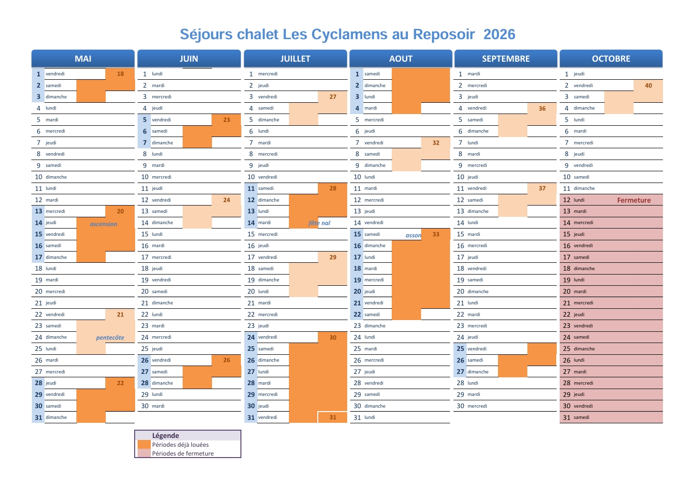 Le montant de la location comprend l’adhésion à l’Association Les Cyclamens, à hauteur de 5€. En temps que membre de l’Association, chaque groupe sera amené à exercer lui-même son propre gardiennage.